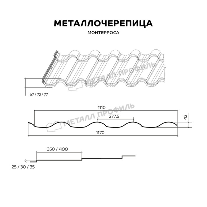 Металлочерепица Металл-Профиль Супермонтеррей 0,45 Полиэстер RAL 7004 Серый Показать информацию